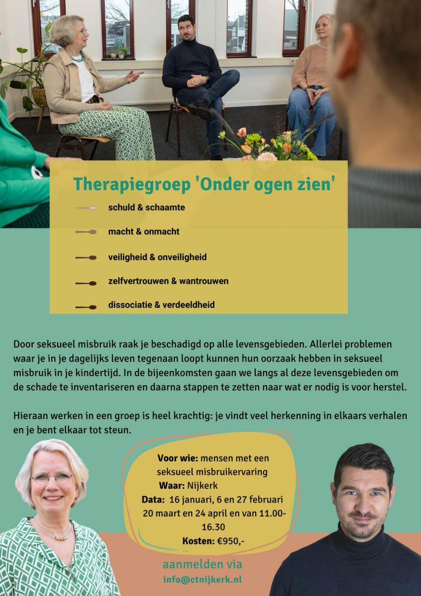 Centrum Traumaseksuologie Nijkerk biedt meerdere malen per jaar groepstherapie aan.
